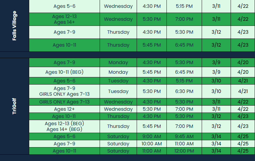 In each of our seven-week sessions, time is spent warming up, learning about the Key Commitment for that day, and rotating between golf stations with topics ranging from putting, chipping, pitching, or full swing. Because we are first and foremost a youth development organization, we focus on seamlessly integrating our Key Commitments, and we help participants understand how important these values are on and off the golf course. Participants may only attend class one day per week, and offerings depend on the facility. Please view the schedule located below to find the best fit for your participant(s).