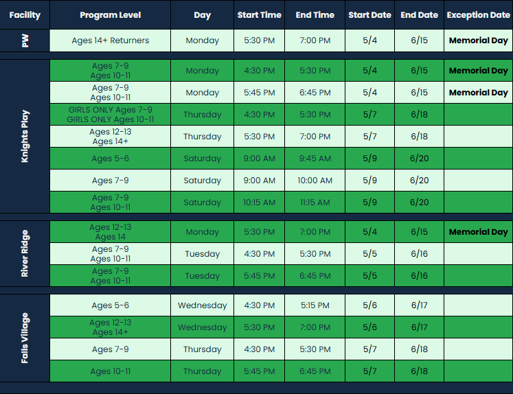 Exception Dates: Monday, May 25th in observance of Memorial Day