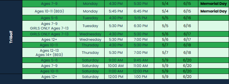 In each of our seven-week sessions, time is spent warming up, learning about the Key Commitment of the day, and rotating between golf stations with topics ranging from putting, chipping, pitching, or full swing. Because we are first and foremost a youth development organization, we focus on seamlessly integrating our Key Commitments and help participants understand the importance of these values on and off the course. Participants may only attend class one day per week, and offerings depend on the facility. Please view the schedule located below to find the best fit for your participant(s).